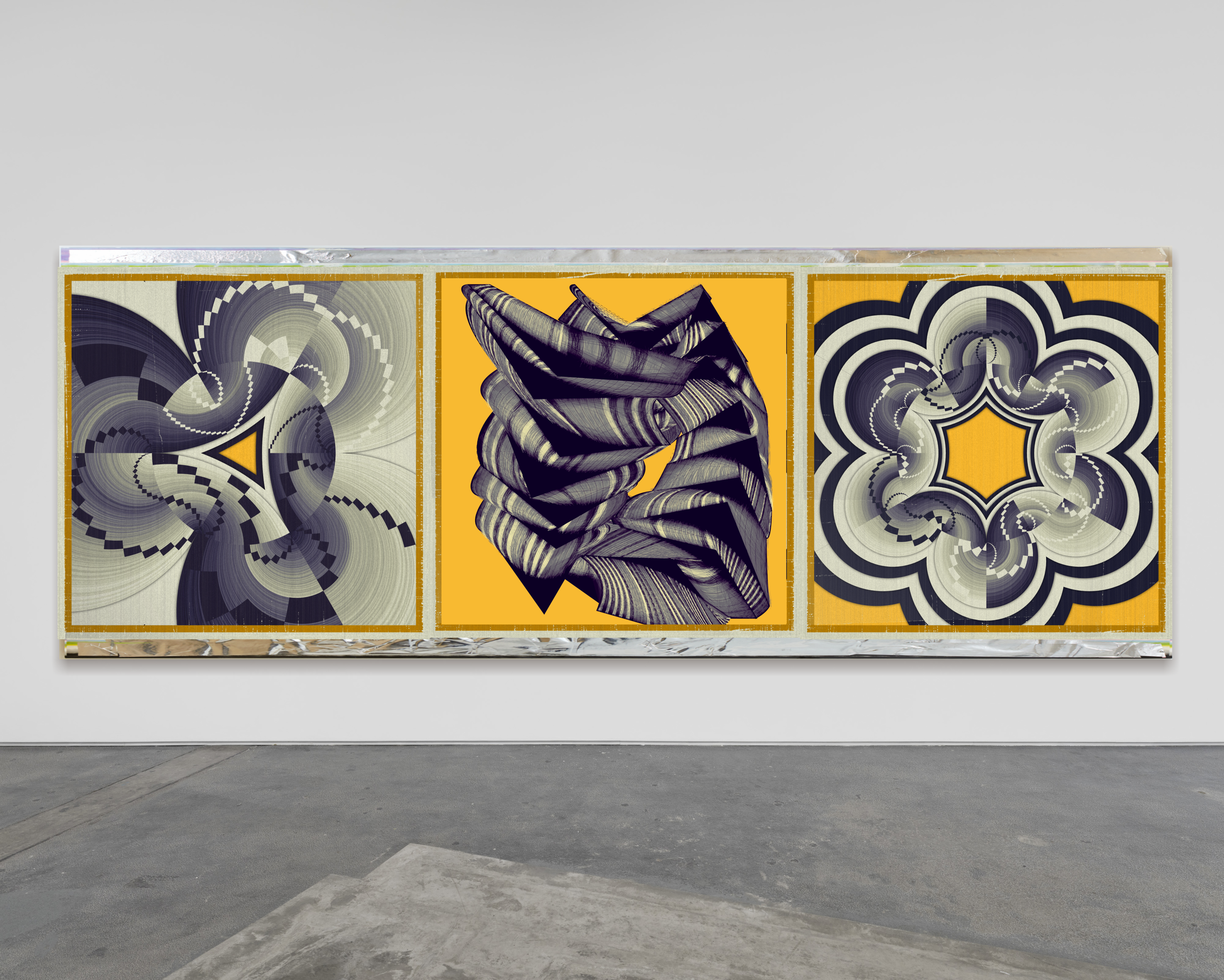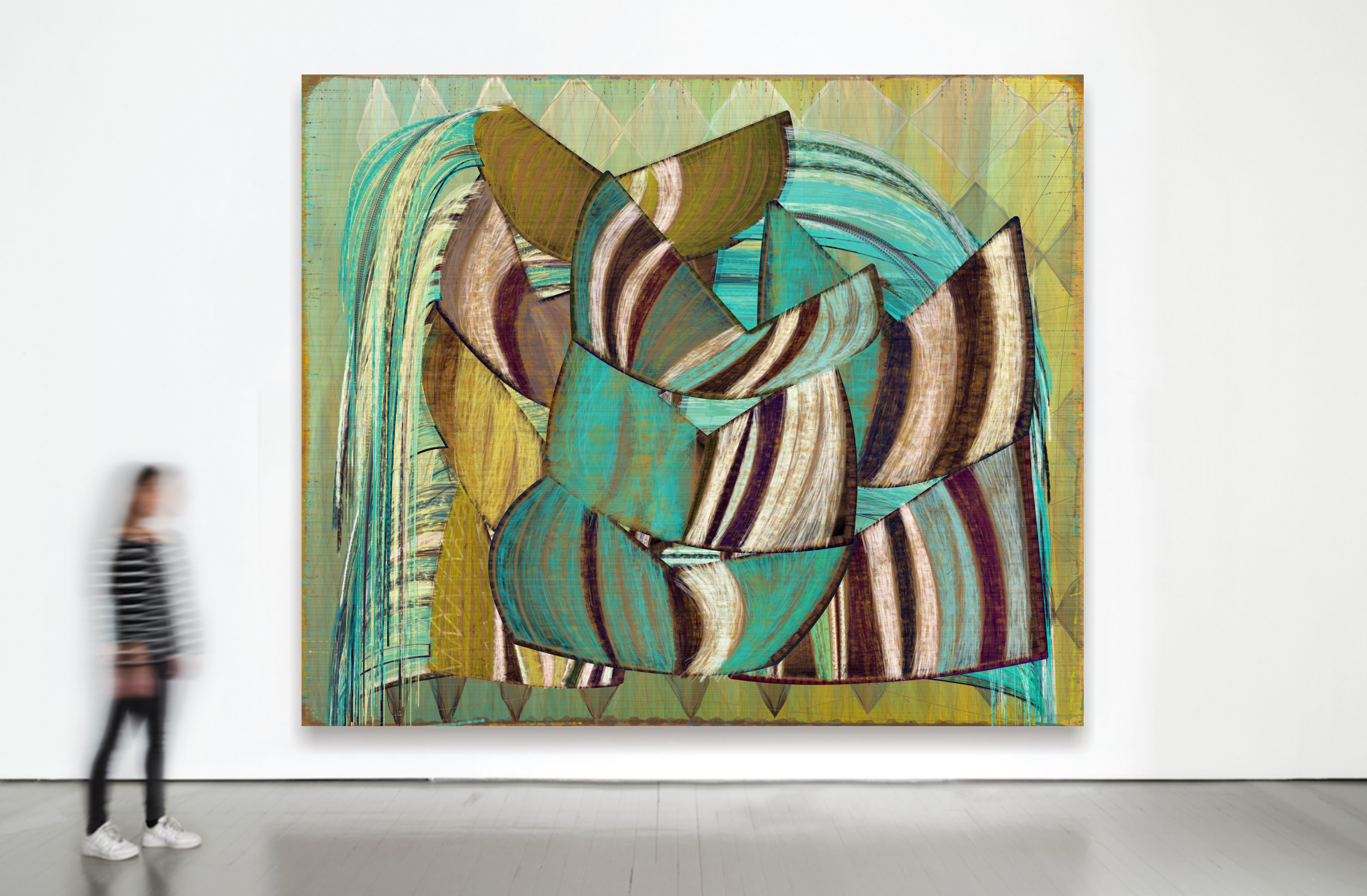 These artworks are created using an algorithmic process: precise written instructions that tell a computer how to build color and textural elements and assemble them compositionally. Here, code is the medium and the algorithm represents the artist’s gesture and compositional instinct.